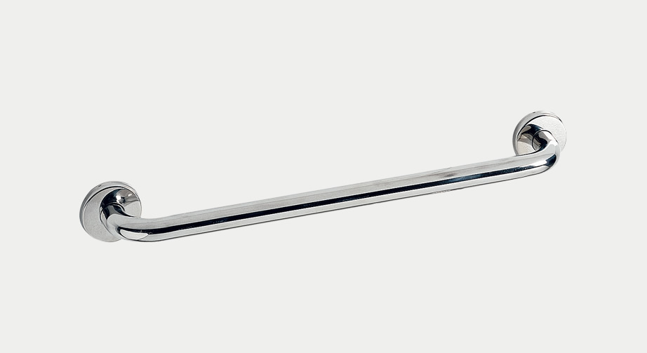 Esta asa de baño es un complemento de acero inoxidable en brillo.